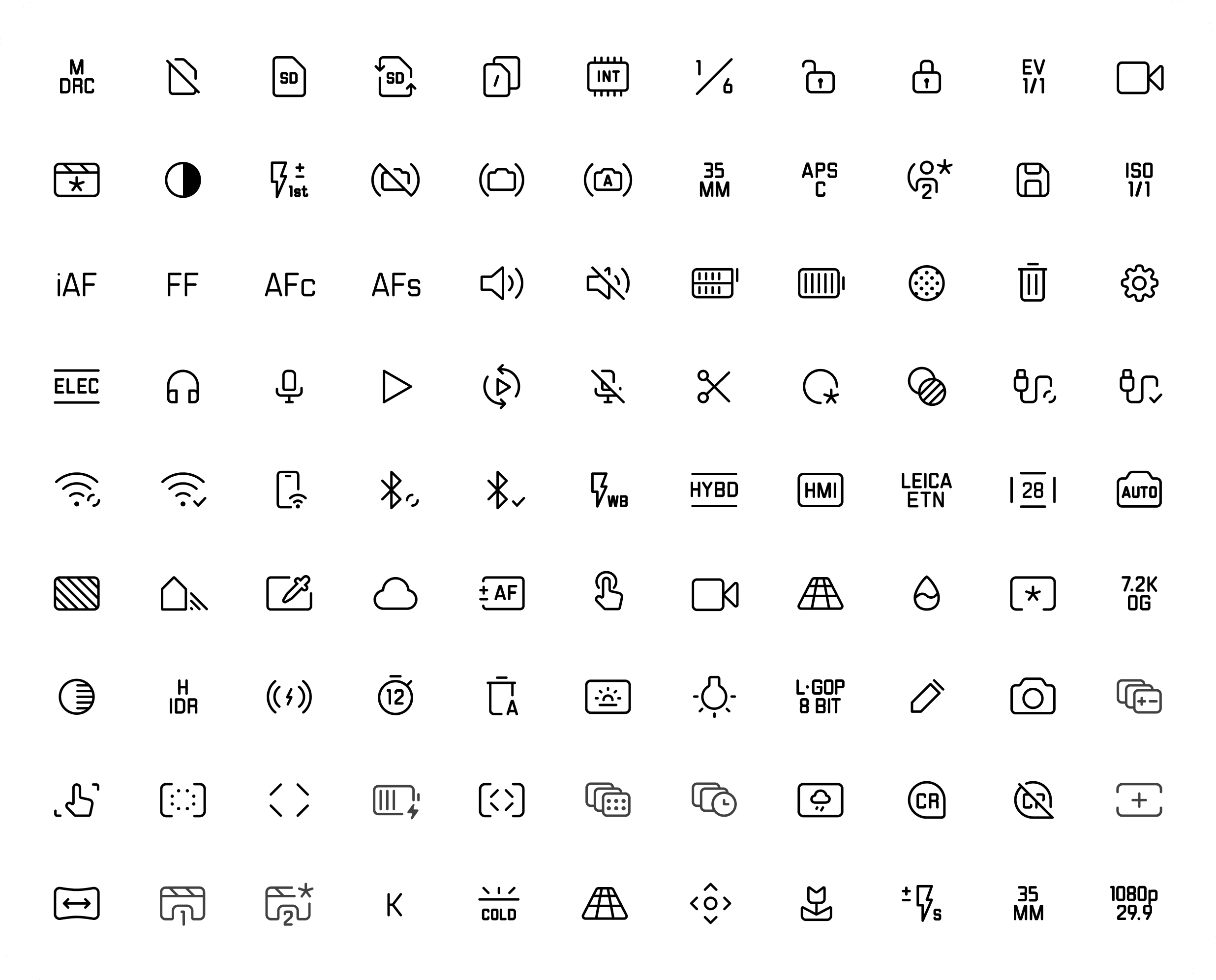 Every icon echoes the precision and craftsmanship of Leica typography, forming a cohesive visual language that brings clarity and consistency to camera interfaces.