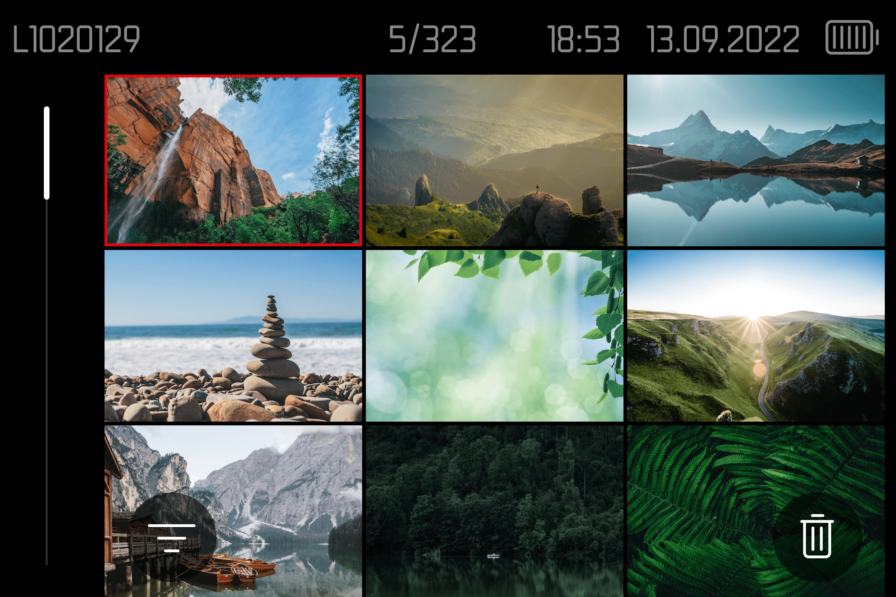 Swipe up – reveals essential settings, swipe down – opens the gallery. In harmony with the physical controls, this interaction model offers immediate access throughout the experience, ensuring a faster, more fluid workflow.